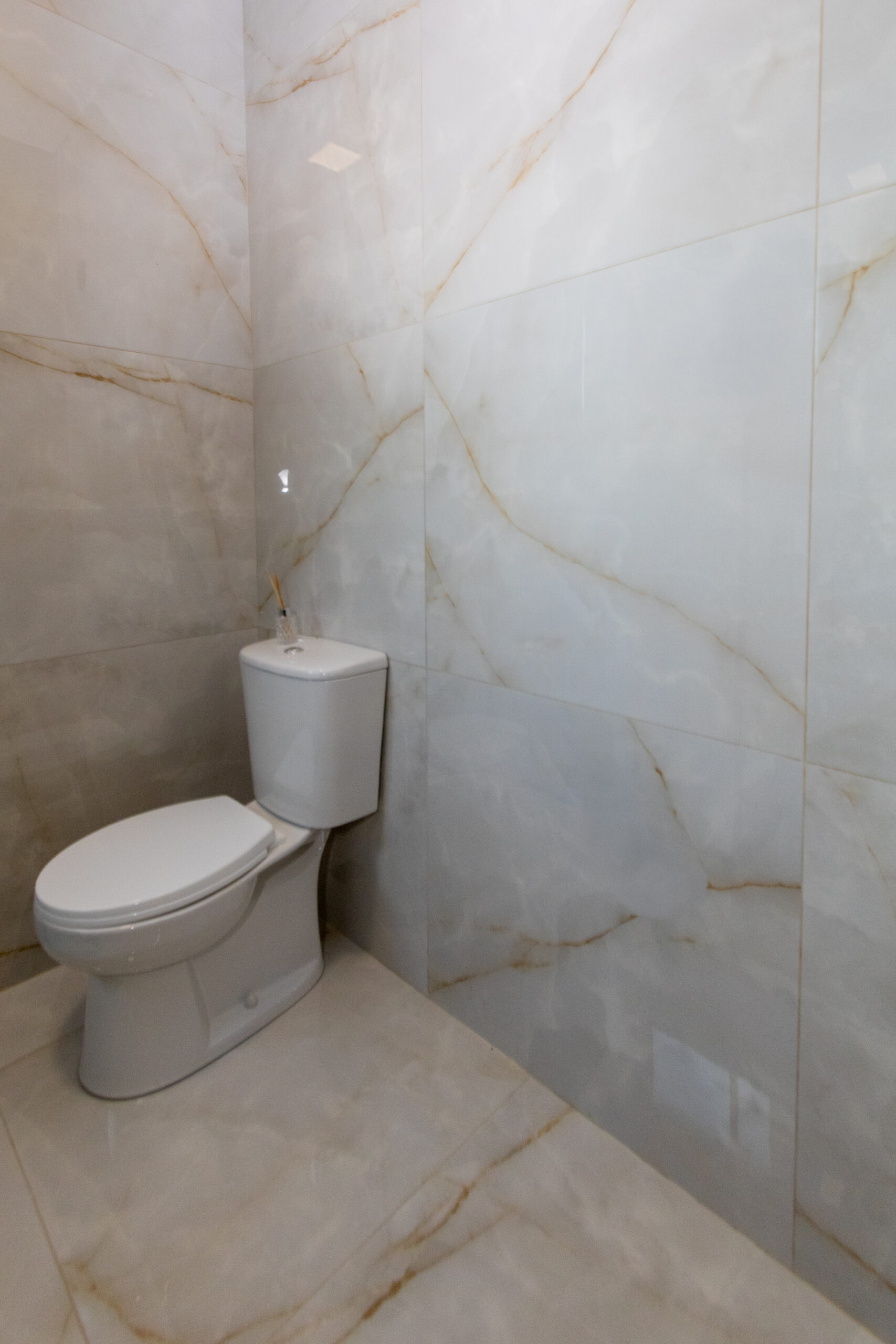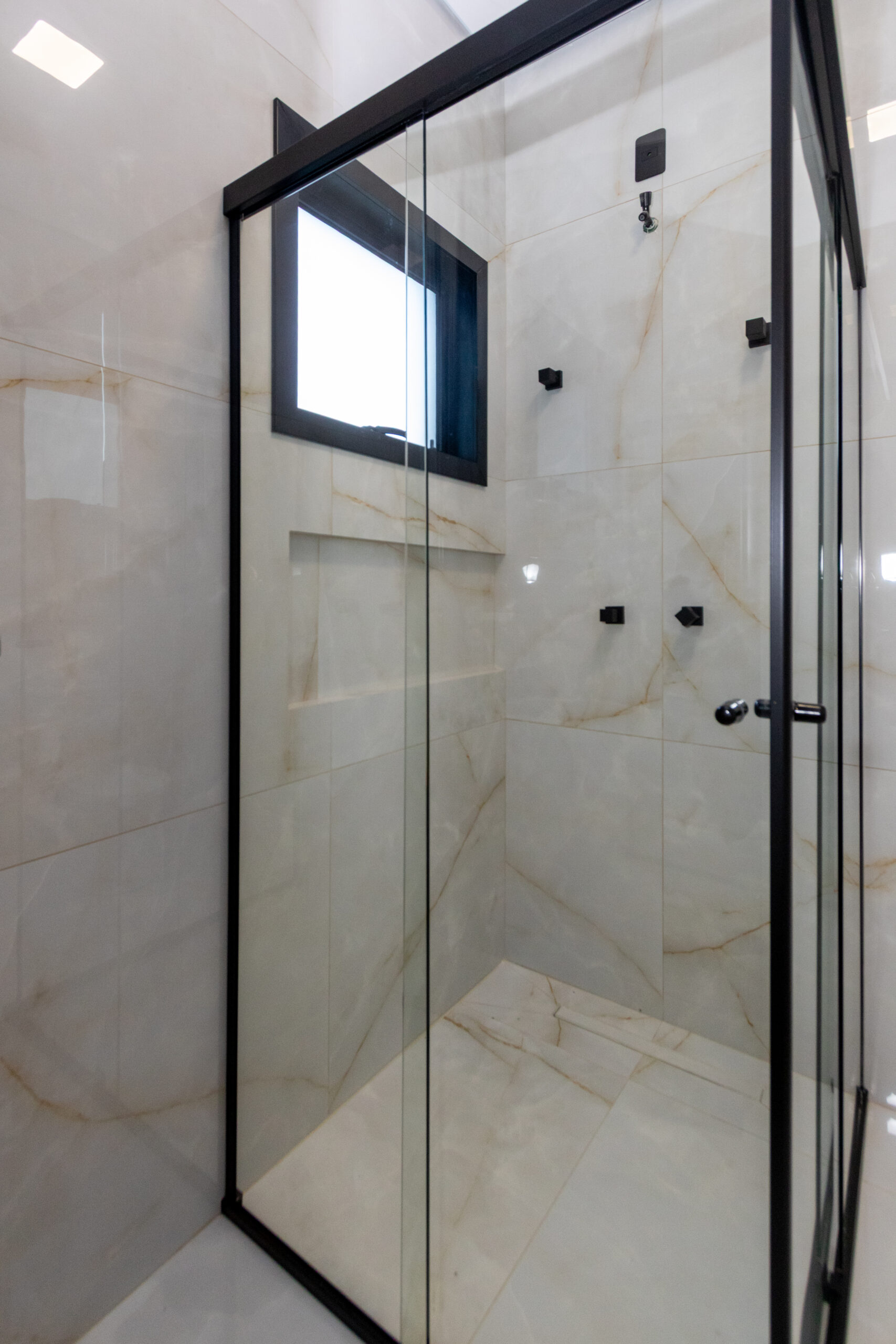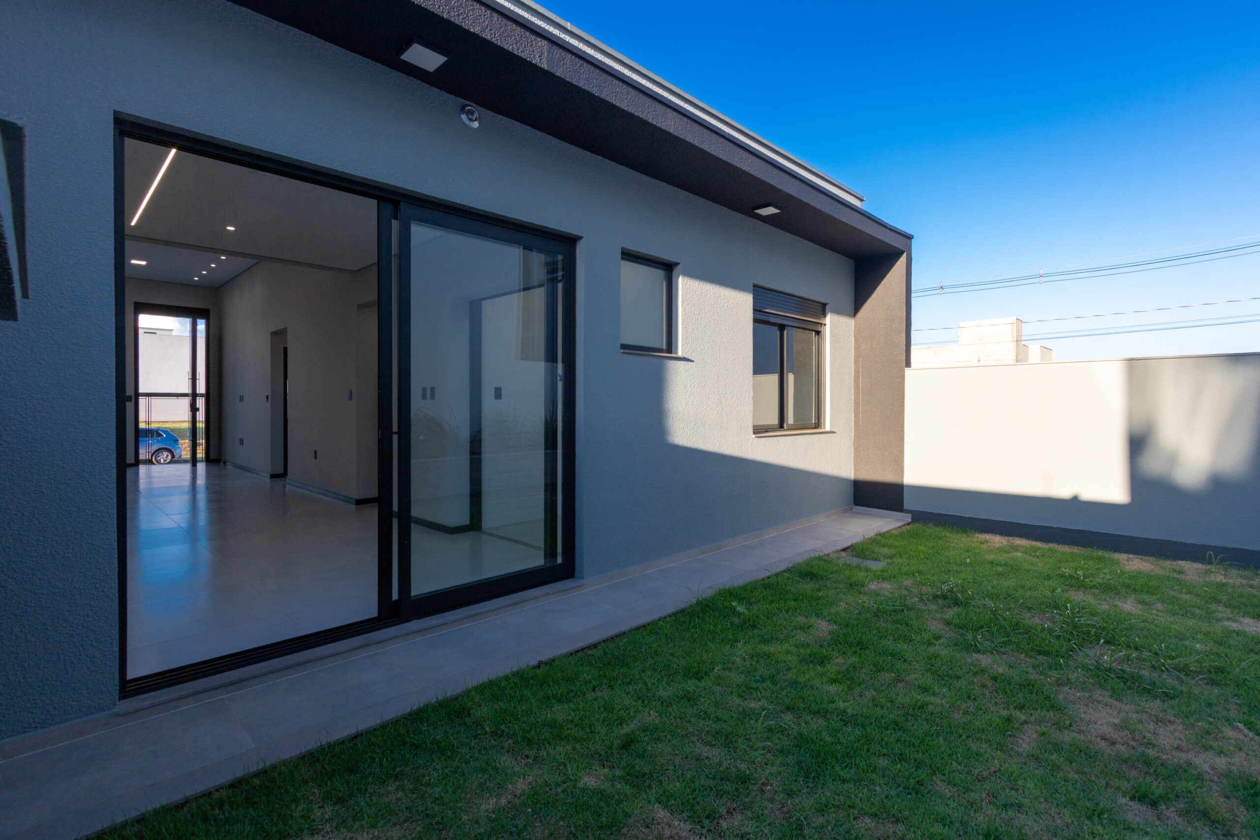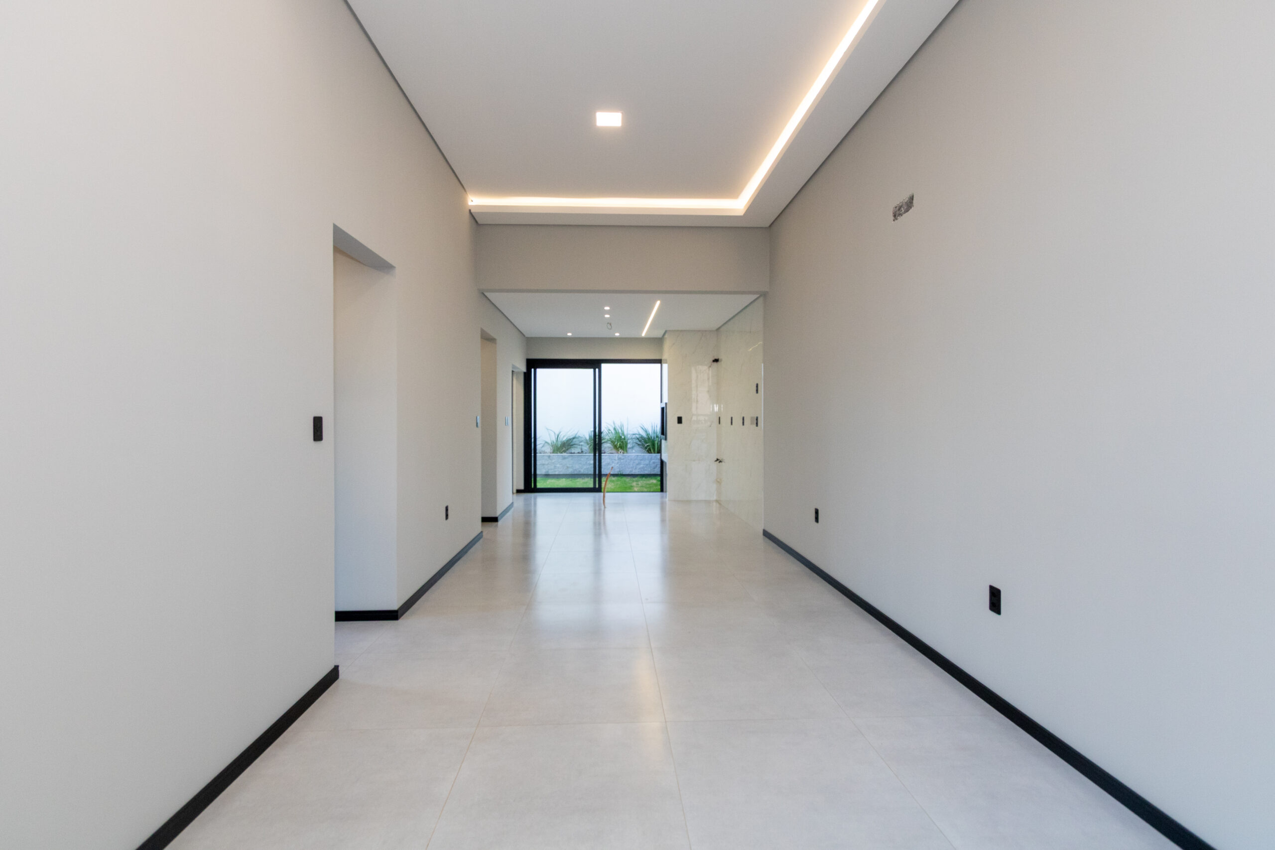 A fachada impressiona pelo design moderno, com revestimento em pedra natural e iluminação já instalada, além de porta pivotante com fechadura eletrônica, oferecendo segurança e elegância desde a entrada. O imóvel conta ainda com interruptores smart, sanca de gesso com cortineiros e tubulação de água quente na cozinha, lavanderia e banheiros.