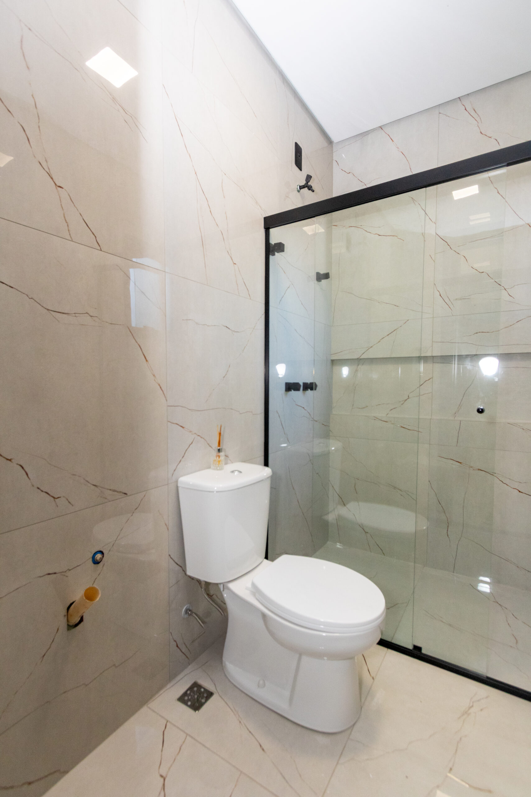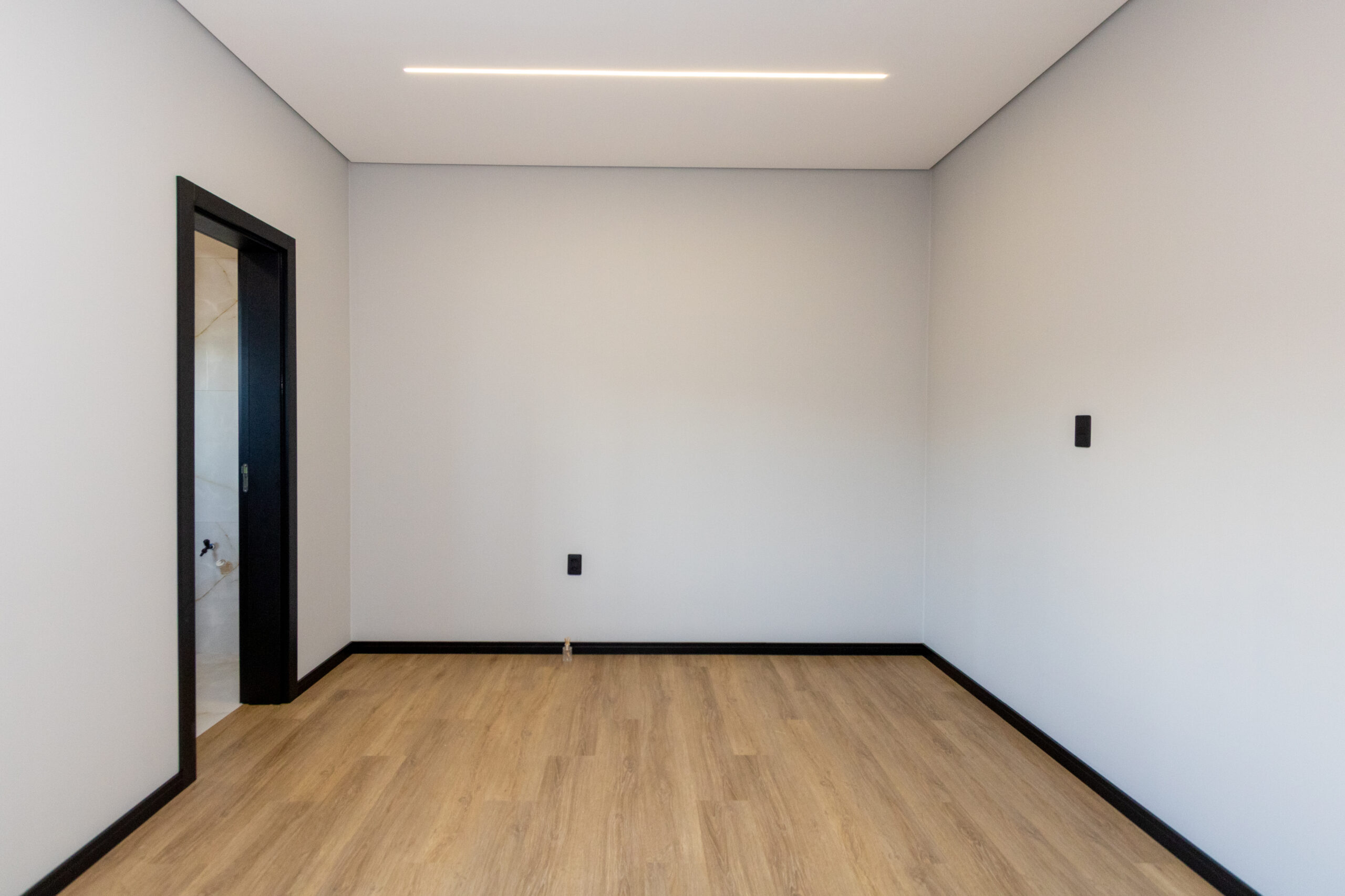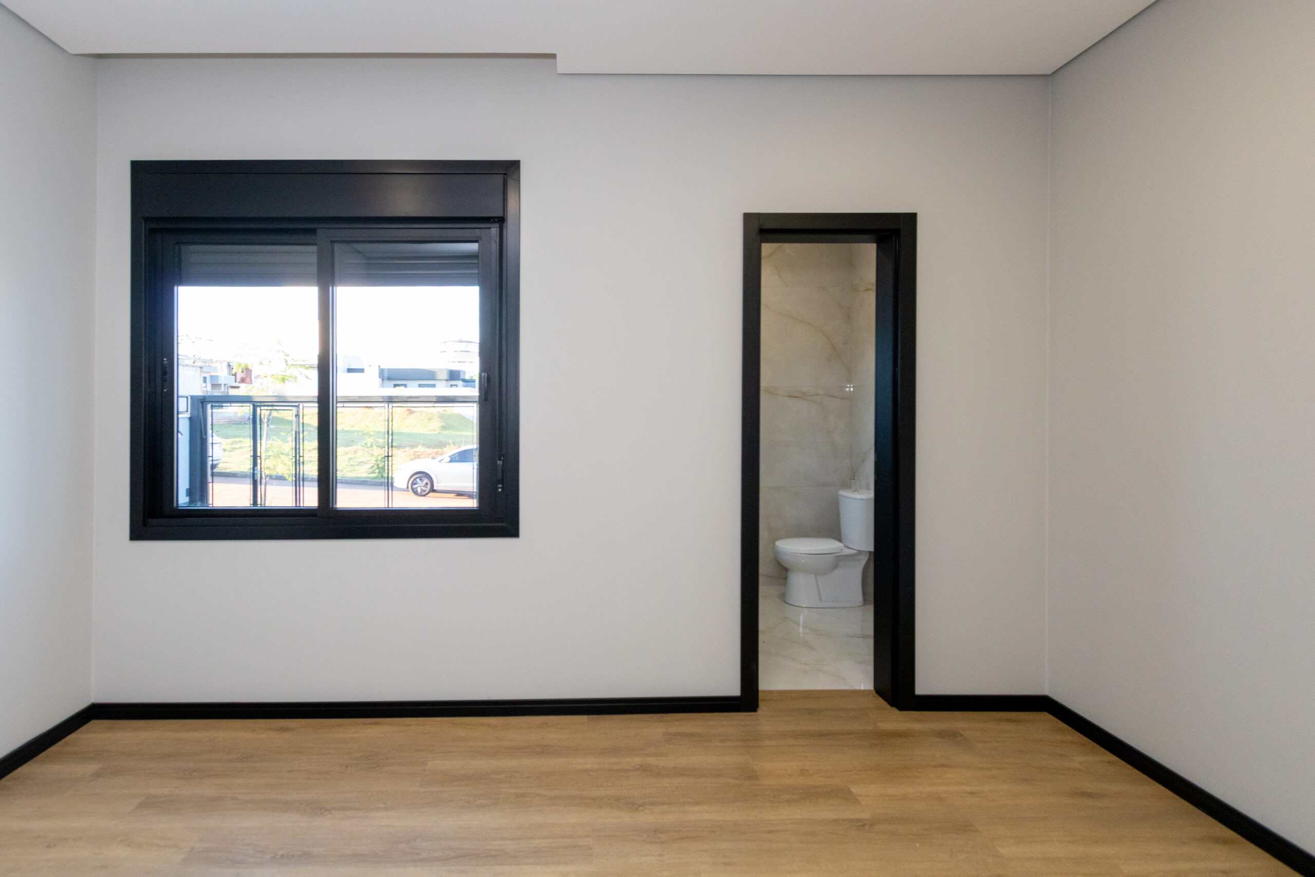 O padrão construtivo se destaca pelos acabamentos de alto nível, com piso vinílico nos dormitórios, pintura refinada, portas internas, rodapés e pisos cuidadosamente selecionados. As esquadrias pretas com persianas reforçam o estilo contemporâneo do projeto.